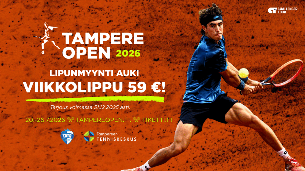 Tampere Open pelataan Tampereen Tenniskeskuksella 20.-26.7.2026. Turnauksen lipunmyynti on avattu; ensimmäisessä vaiheessa on saatavilla edullinen viikkolippu.
