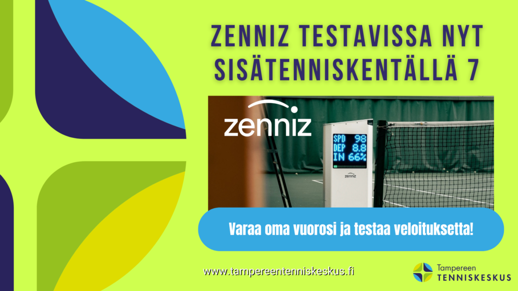 Tampereen Tenniskeskukselle asennettiin viime viikolla testattavaksi Zenniz -laite sisätenniskentälle 7. Laitetta on testikäytössä ja sitä saa testata veloituksetta varaamalla vain vuoron kyseiselle kentälle.